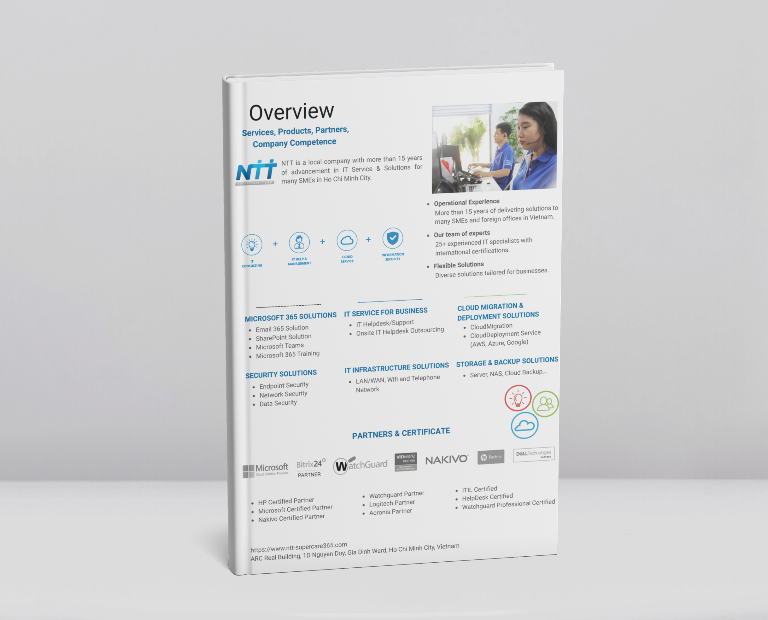 Since 2008, New Telecom Technology Company (NTT) has focused on providing IT services and solutions for small and medium-sized enterprises (SMEs), helping our customers run their businesses with peace of mind without worrying about IT.