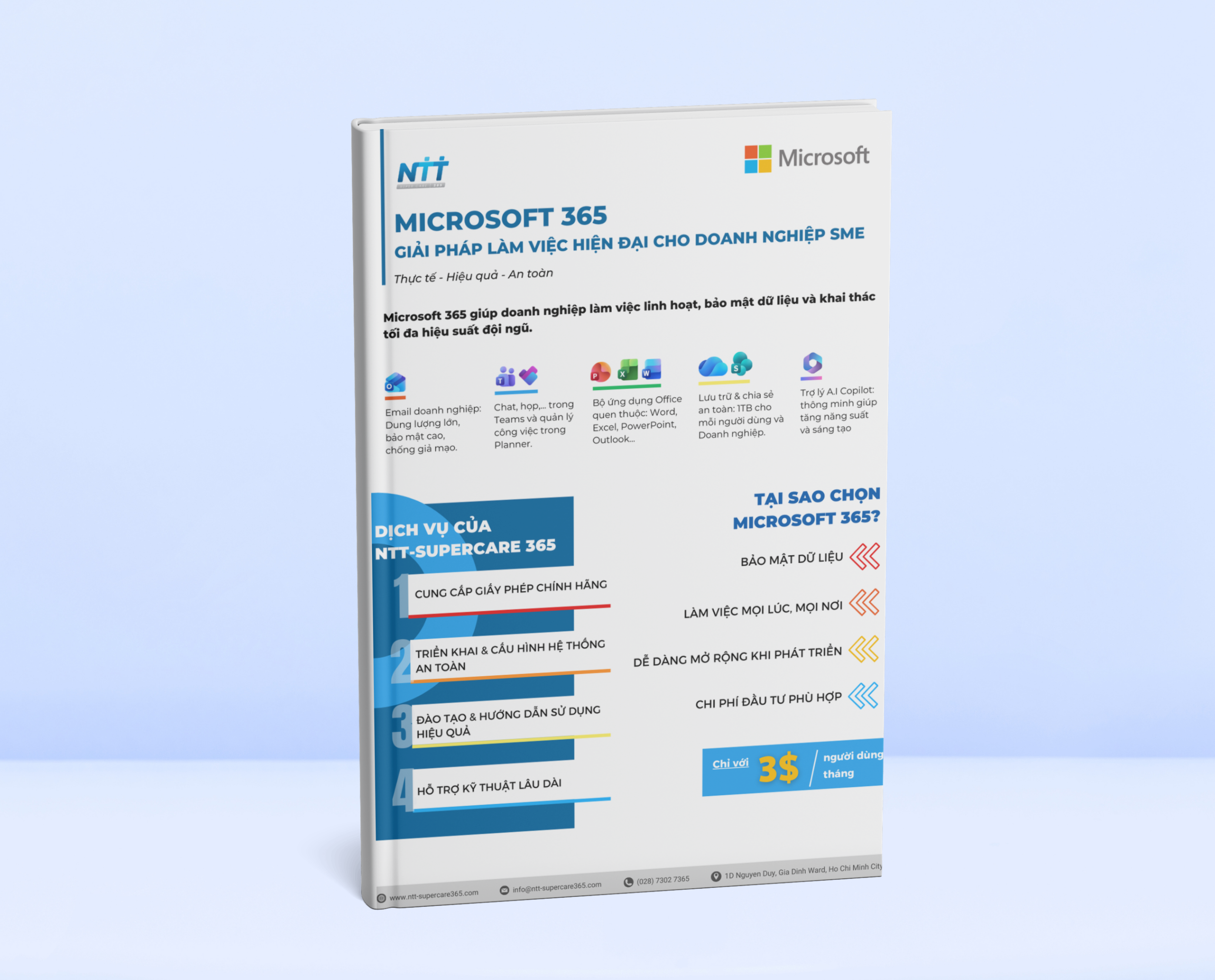 Dịch vụ tư vấn & triển khai của NTT SuperCare365 giúp doanh nghiệp nhỏ dễ dàng và nhanh chóng tiếp cận các lợi ích của công nghệ Microsoft 365.